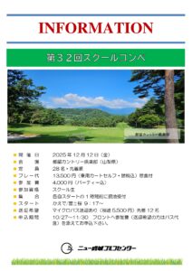 ★各回、テーマを設定しております 日程 コース 対象 定員 集合 8/28(木) 秦野CC(神奈川県秦野市) 前村プロスクール生 3名 現地 7/15(火) 秦野CC 前村プロスクール生 3名(満員) 現地 6/26 […]